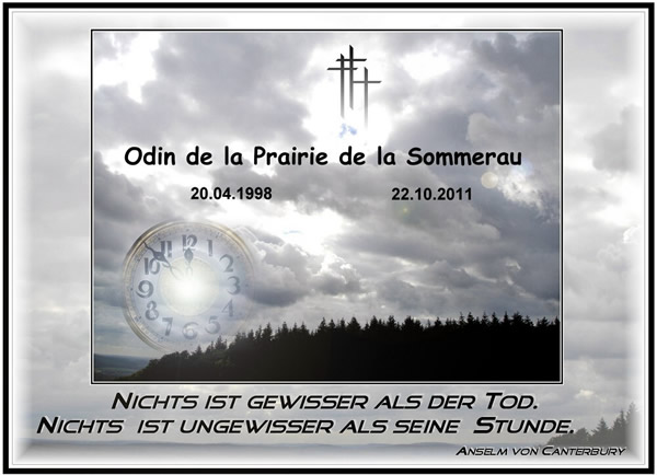 Unser wunderbares kleines Mädchen Ca-Jing of Black Magic's Castle verstarb nach kurzer Krankheit. Das Geschehene: ..Unbegreiflich Der Schmerz darüber:...Unerträglich. Sie lebt weiter in unseren Herzen:..Unvergessen